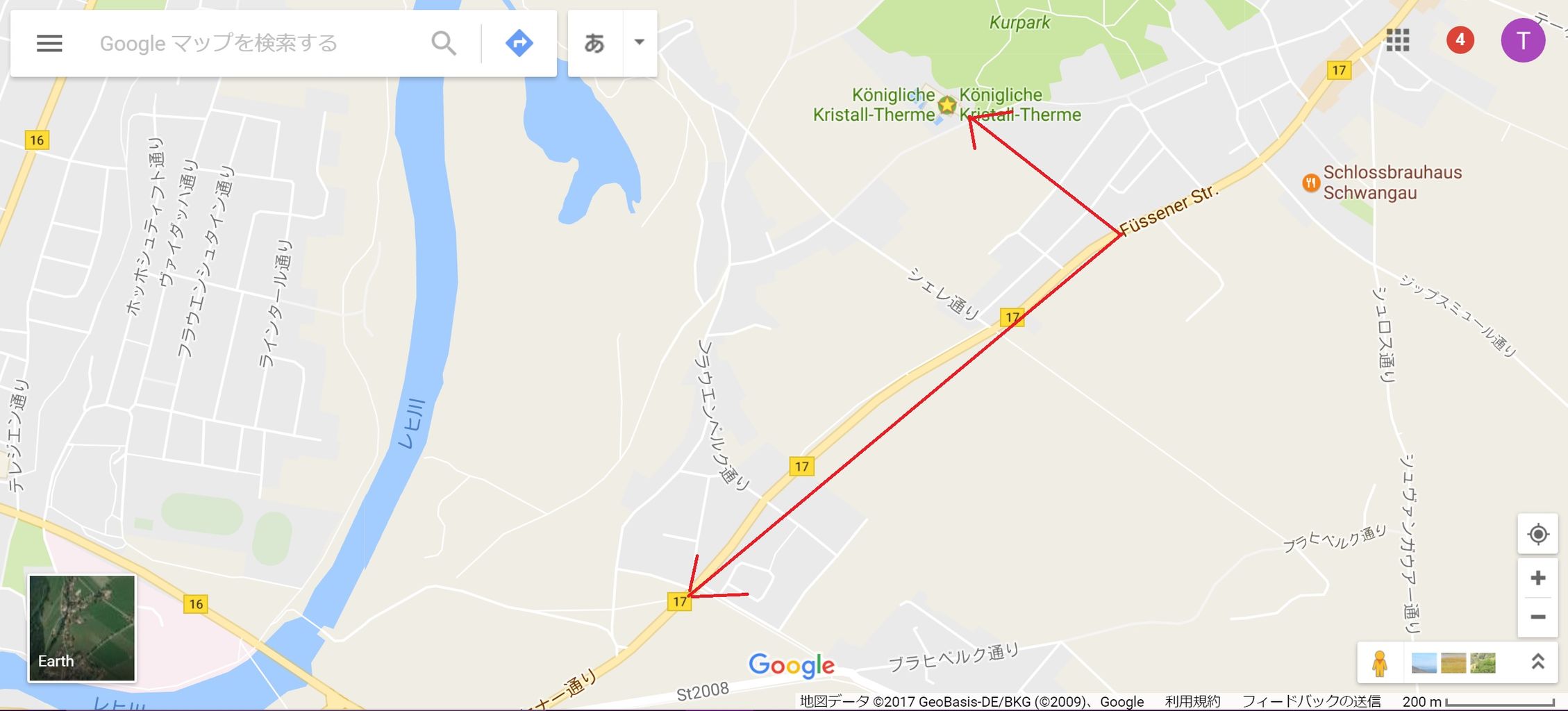 10分も乗っていればホーエンシュバンガウ城のお膝元、Hohenschwangau Neuschwanstein Castlesバス停に到着です。このあたり。